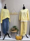 Pantalón chándal de tejido suave y gustoso, confeccionado en una mezcla de poliéster, viscosa y elastano que aporta comodidad, caída fluida y elasticidad.