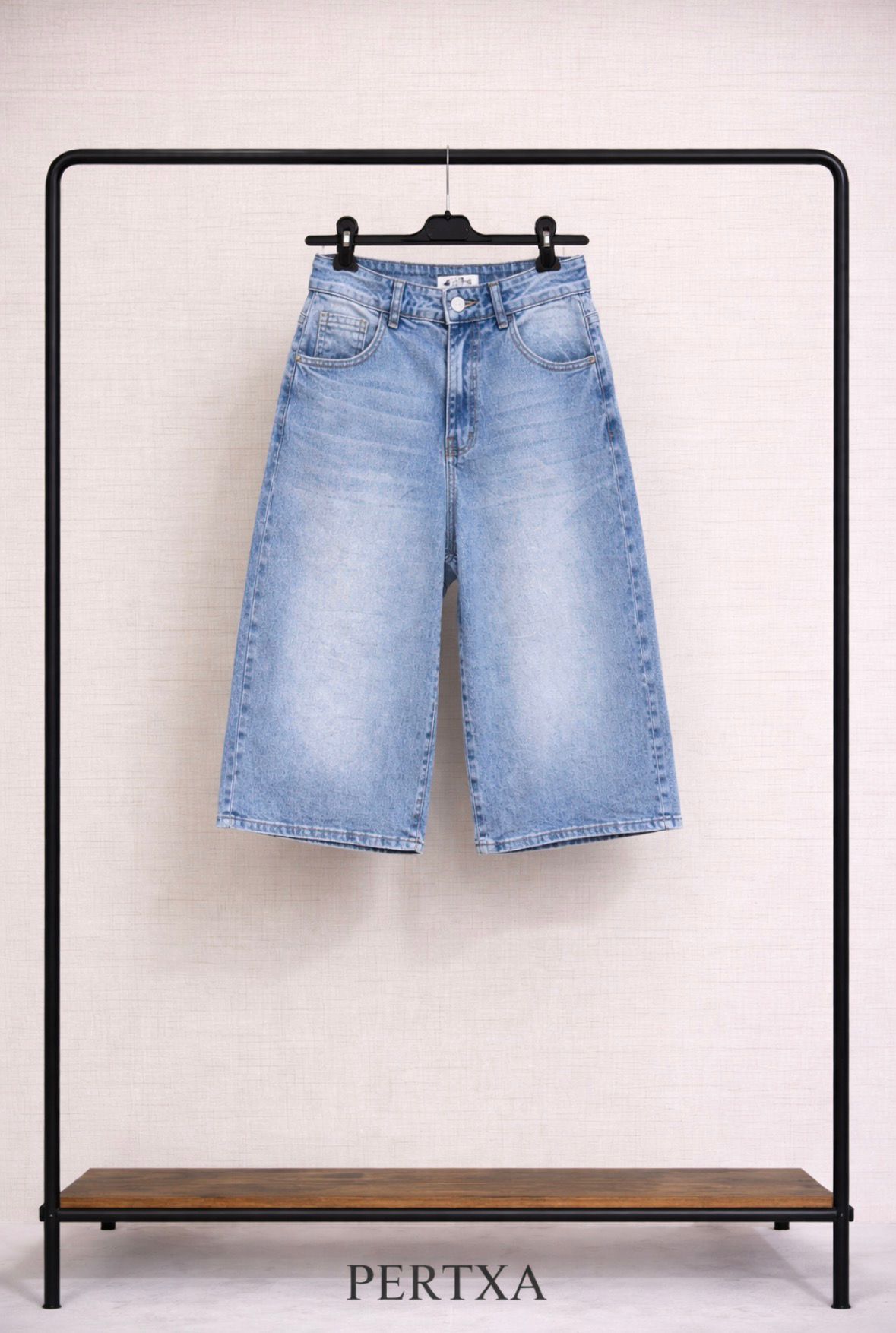 Bermuda vaquera de corte cómodo y favorecedor, con un largo de 66 cm que ofrece el equilibrio perfecto entre estilo y practicidad. Confeccionada en tejido denim resistente y versátil, se adapta bien a la talla, garantizando un ajuste cómodo y fiel. Ideal para looks casuales de verano, combinando fácilmente con camisetas, camisas o tops.