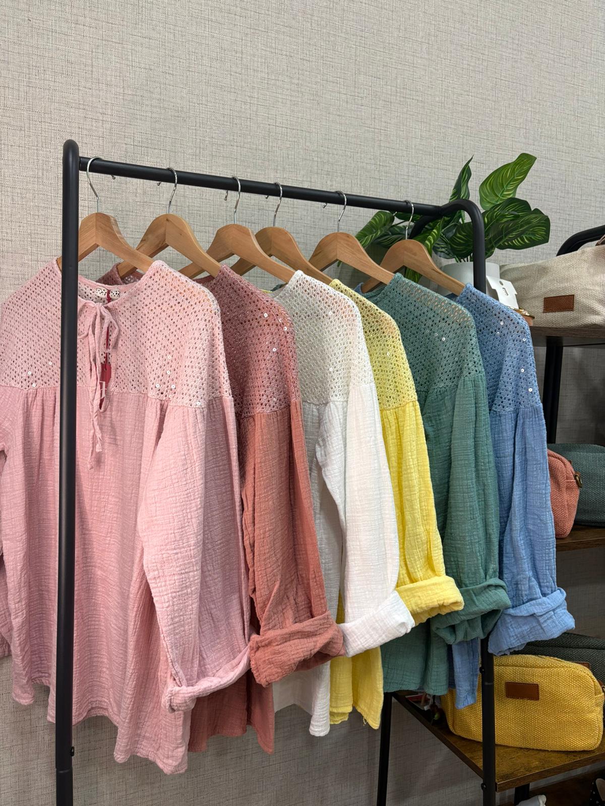 Blusa de algodón con elegante detalle de lentejuelas en los hombros, perfecta para añadir un toque brillante a cualquier look. Su tejido suave y transpirable ofrece comodidad durante todo el día, mientras que el diseño moderno la convierte en una prenda versátil para outfits casuales o más arreglados. Ideal para combinar con jeans, faldas o pantalones y destacar con estilo en cualquier ocasión.