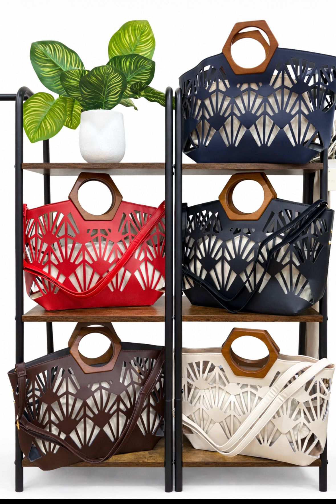 Bolso de mano con asa rígida de madera que aporta un toque natural y sofisticado a cualquier look. Su diseño práctico y ligero lo convierte en el complemento ideal para eventos, salidas o el día a día. Combina estilo y funcionalidad en una pieza versátil, perfecta para quienes buscan un bolso original con inspiración artesanal.