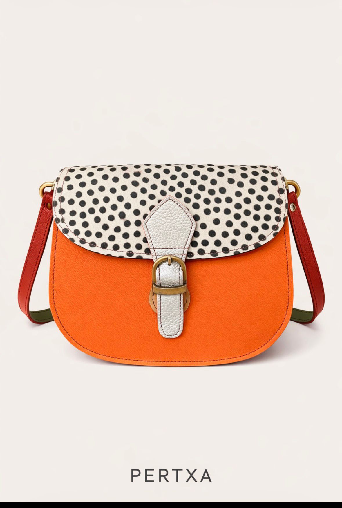 Bolso de serraje con solapa en print llamativo que aporta un toque único y moderno a cualquier look. Cuenta con correa larga ajustable para llevarlo cómodamente al hombro o cruzado. Ligero, resistente y funcional, es ideal para el día a día, salidas o viajes. Un complemento versátil que combina diseño y comodidad.