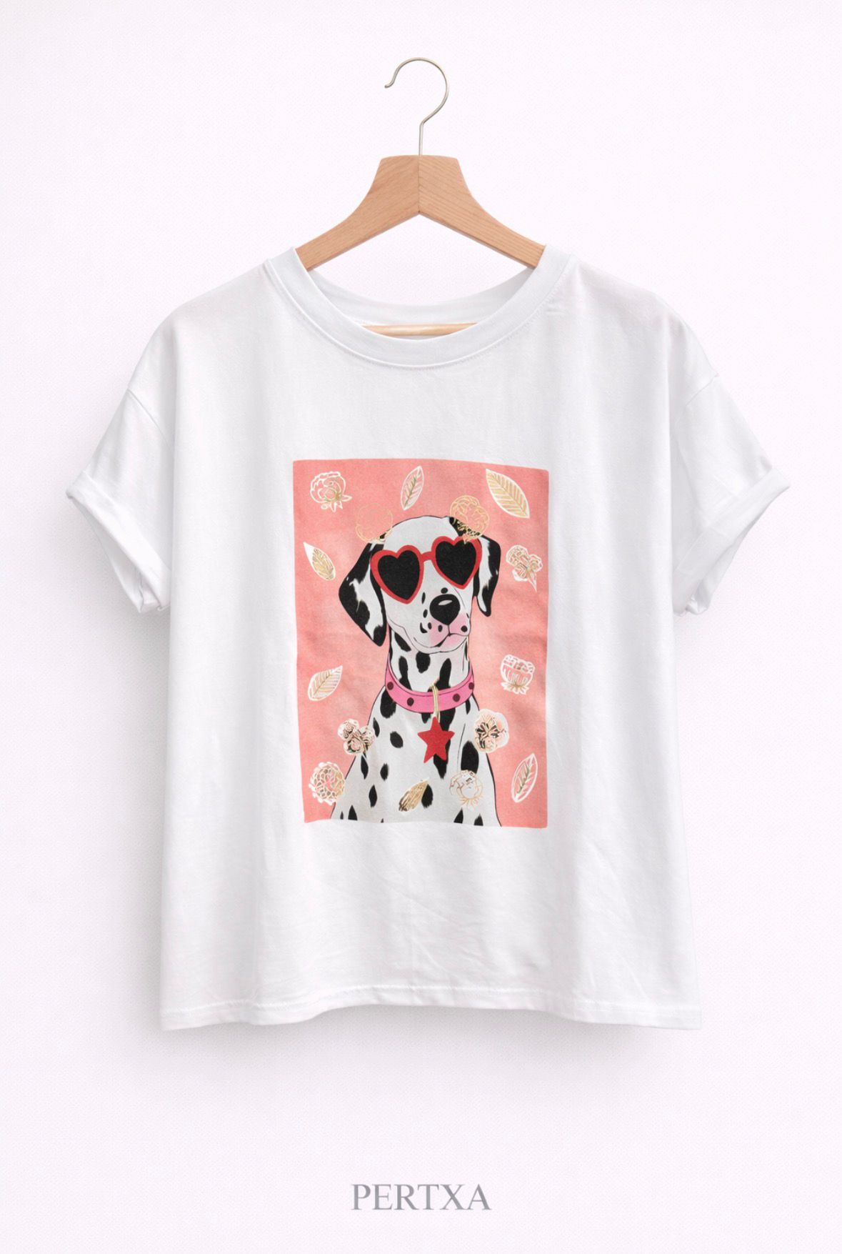Una camiseta cómoda y con estilo para el día a día. Esta camiseta de manga corta de algodón destaca por su dibujo central, un detalle que aporta personalidad y convierte una prenda básica en un imprescindible con carácter.