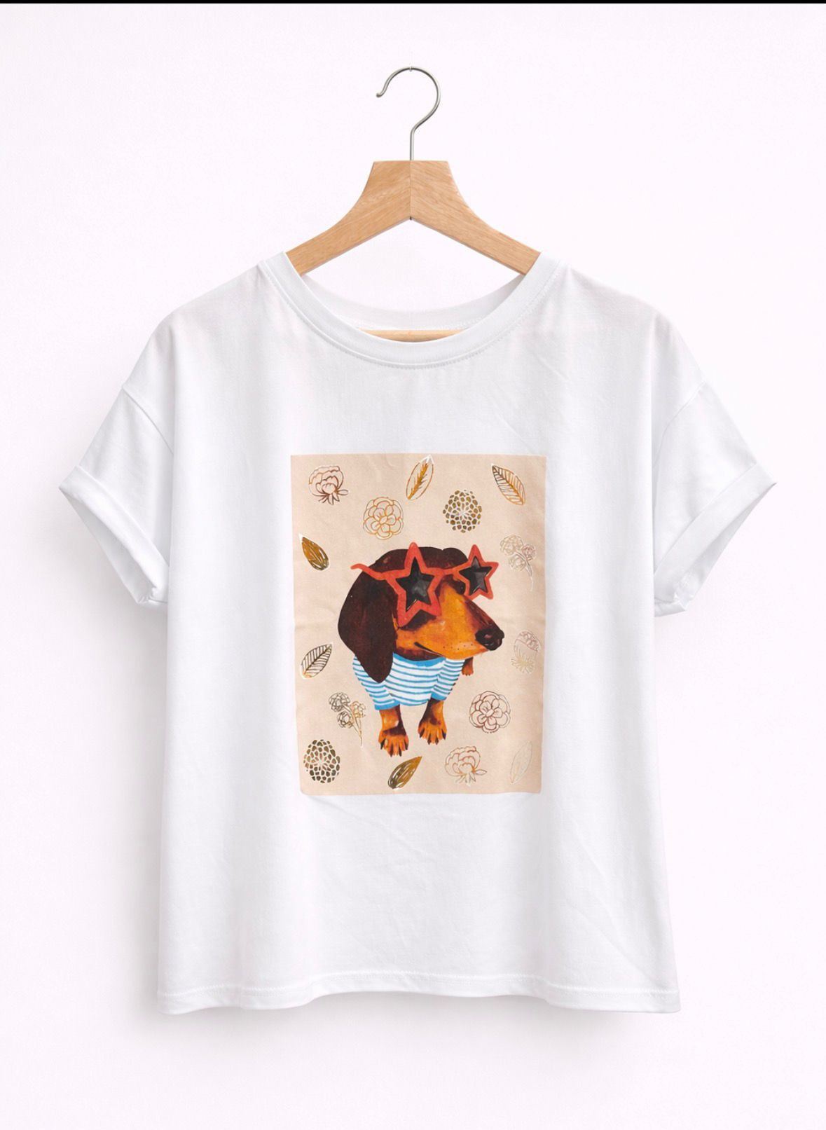 Una camiseta cómoda y con estilo para el día a día. Esta camiseta de manga corta de algodón destaca por su dibujo central, un detalle que aporta personalidad y convierte una prenda básica en un imprescindible con carácter.