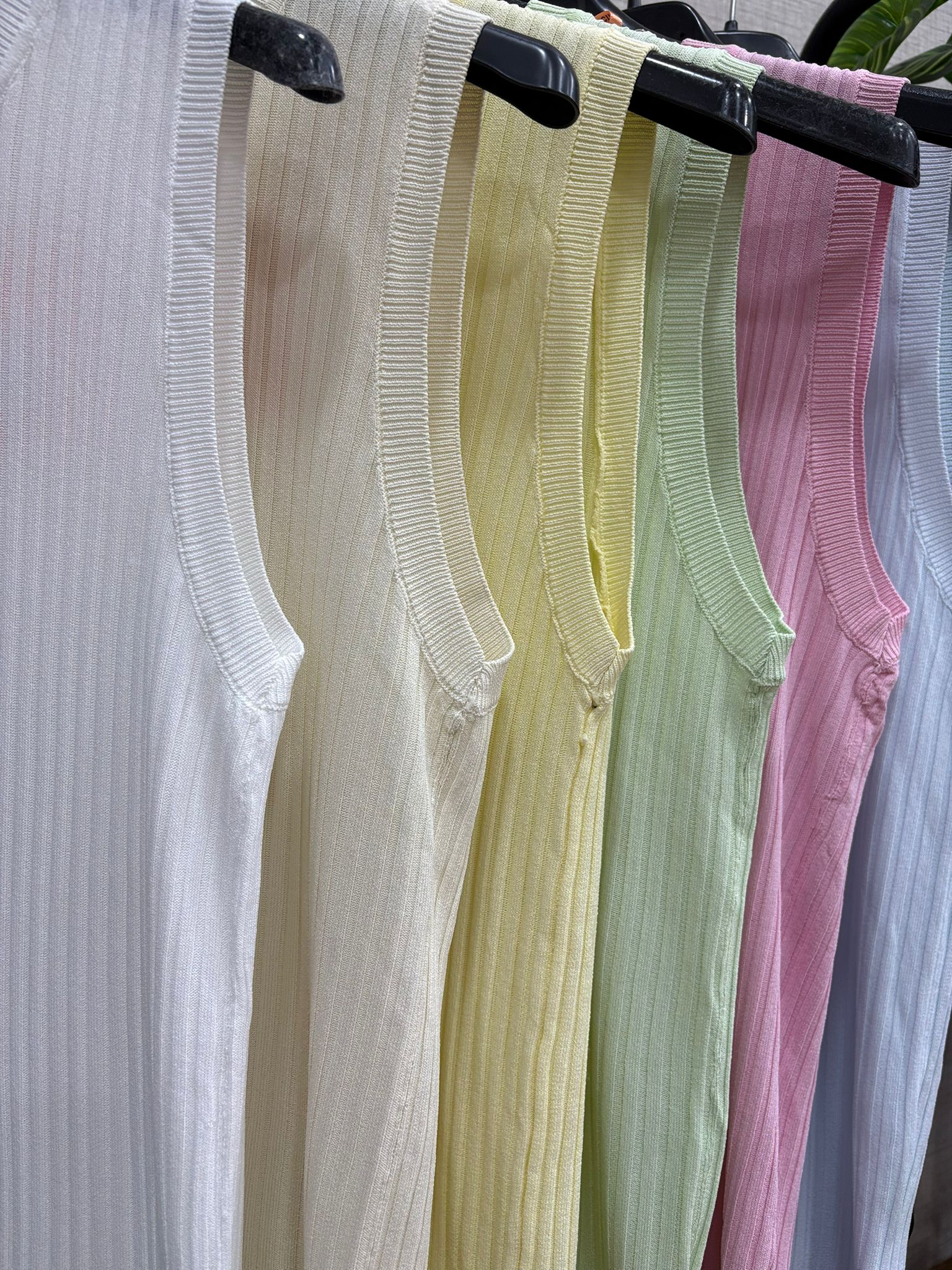 Camiseta sin mangas de mujer confeccionada en mezcla de viscosa y algodón, suave, ligera y transpirable, perfecta para los días más cálidos. Destaca por sus colores primaverales que aportan frescura y un toque alegre a cualquier look. Su diseño cómodo y versátil la hace ideal para combinar con shorts, faldas o jeans en outfits casuales y desenfadados.