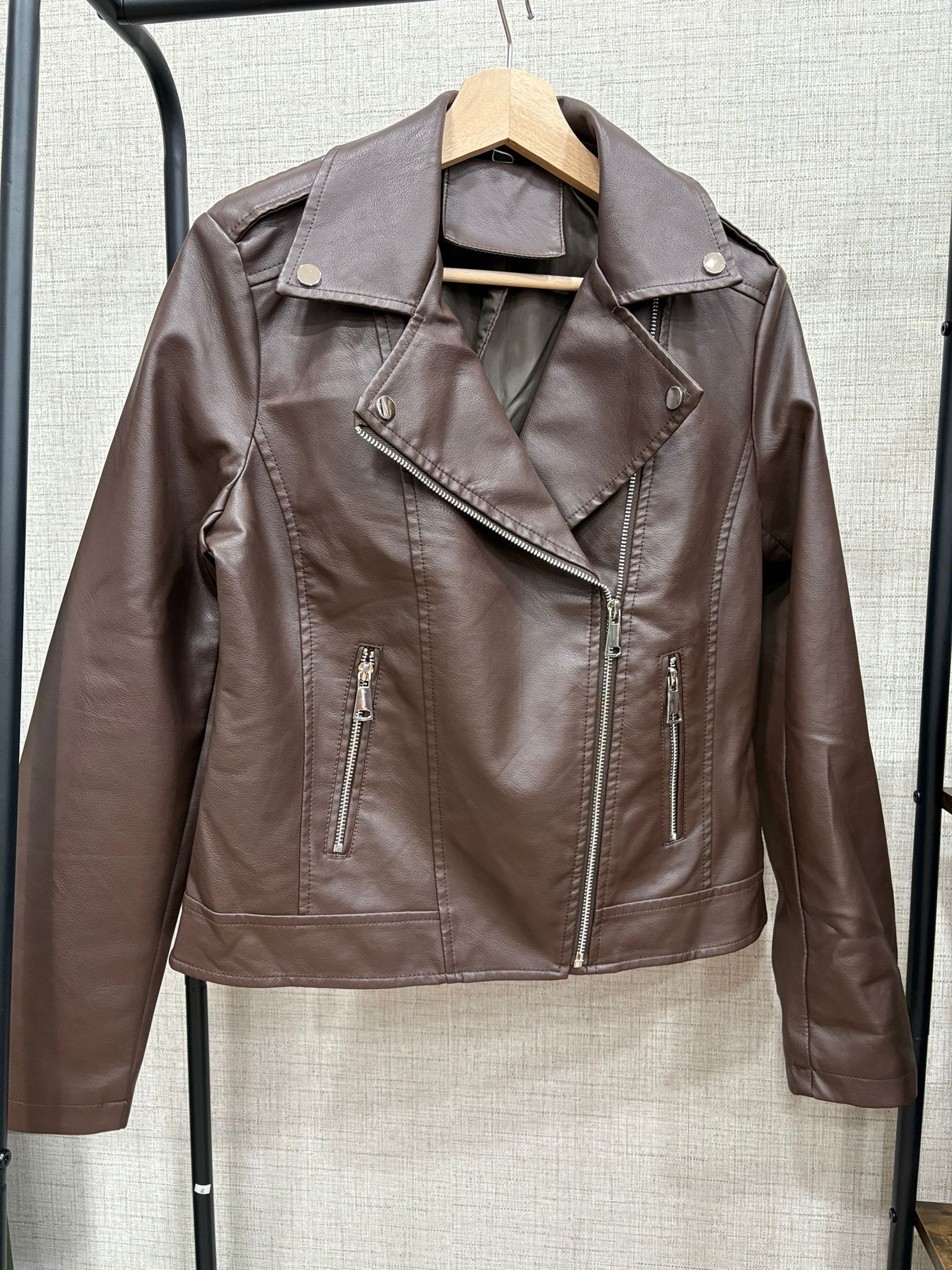 Cazadora de polipiel marrón chocolate