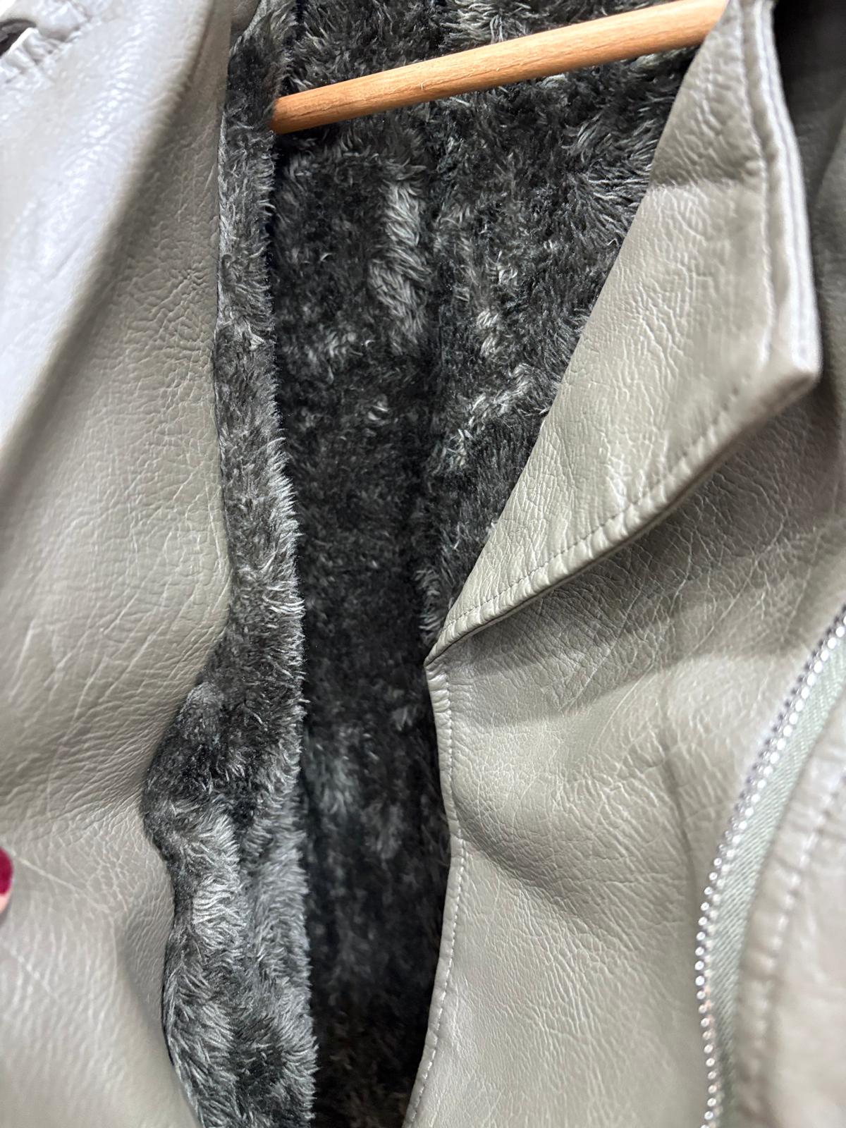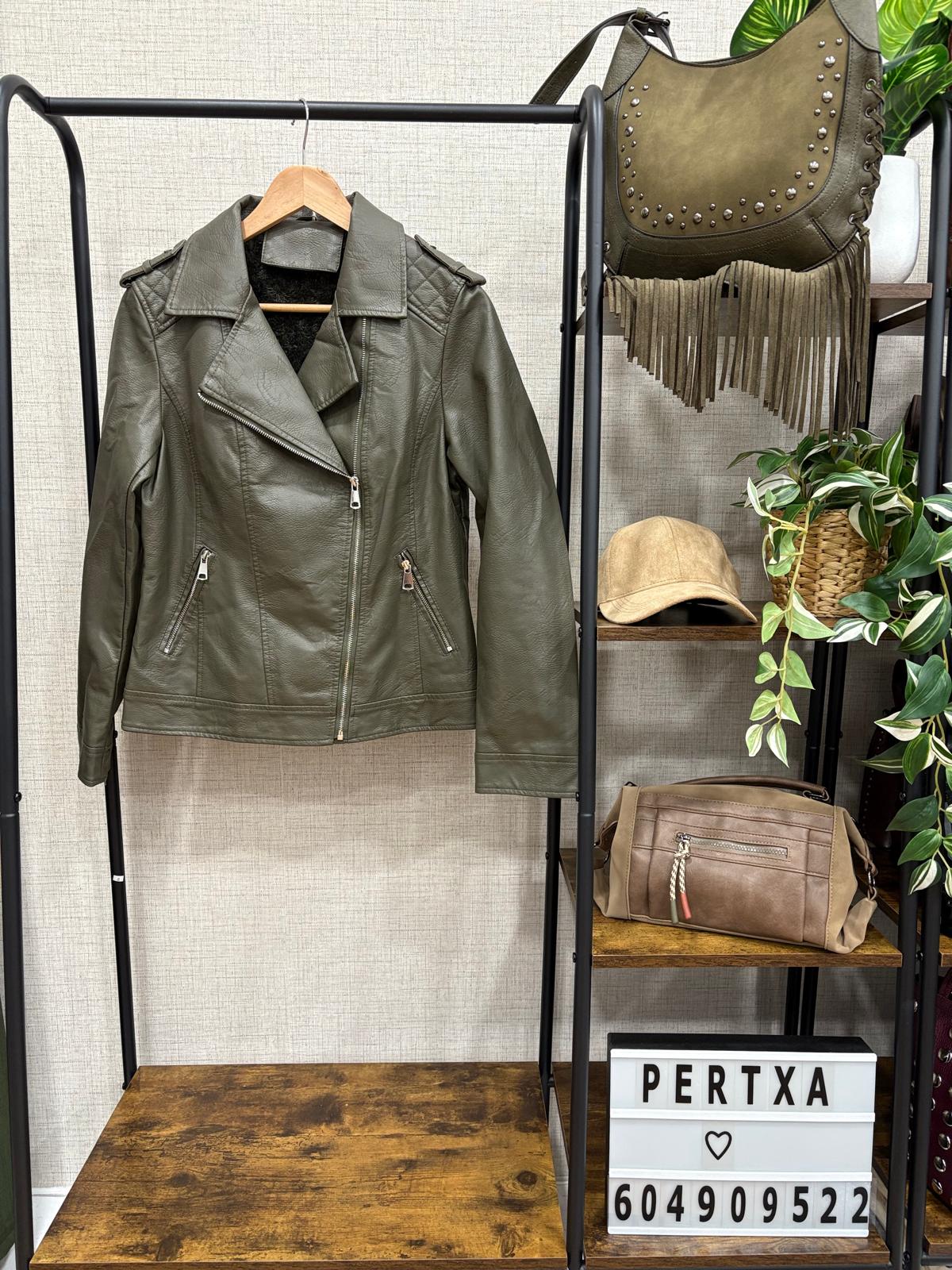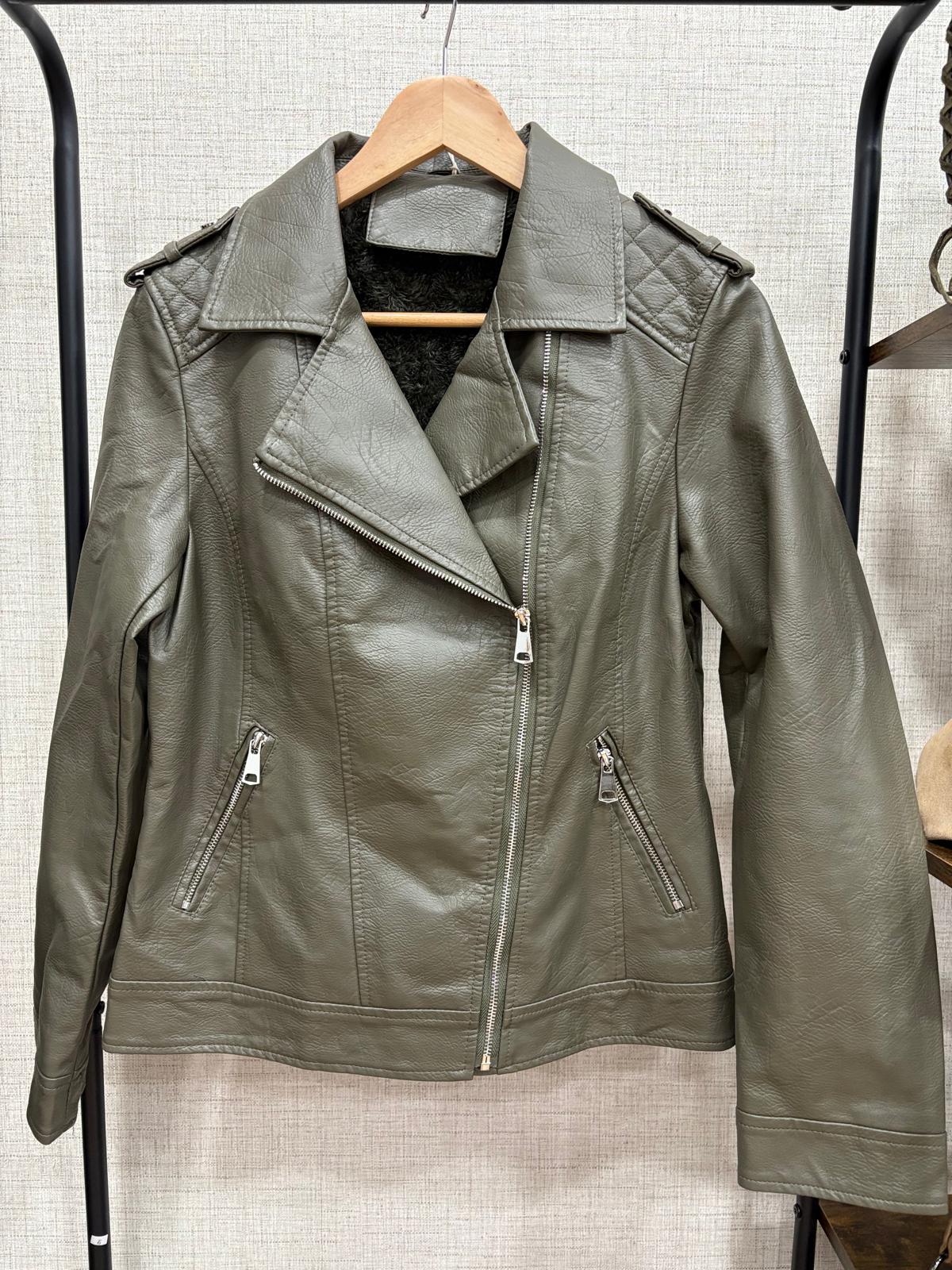 Cazadora de polipiel en color verde con interior forrado en pelo suave, ideal para mantener el calor con estilo. Diseño moderno y versátil, perfecta para completar looks urbanos y dar un toque de color a cualquier conjunto. Disponible en varias tallas.