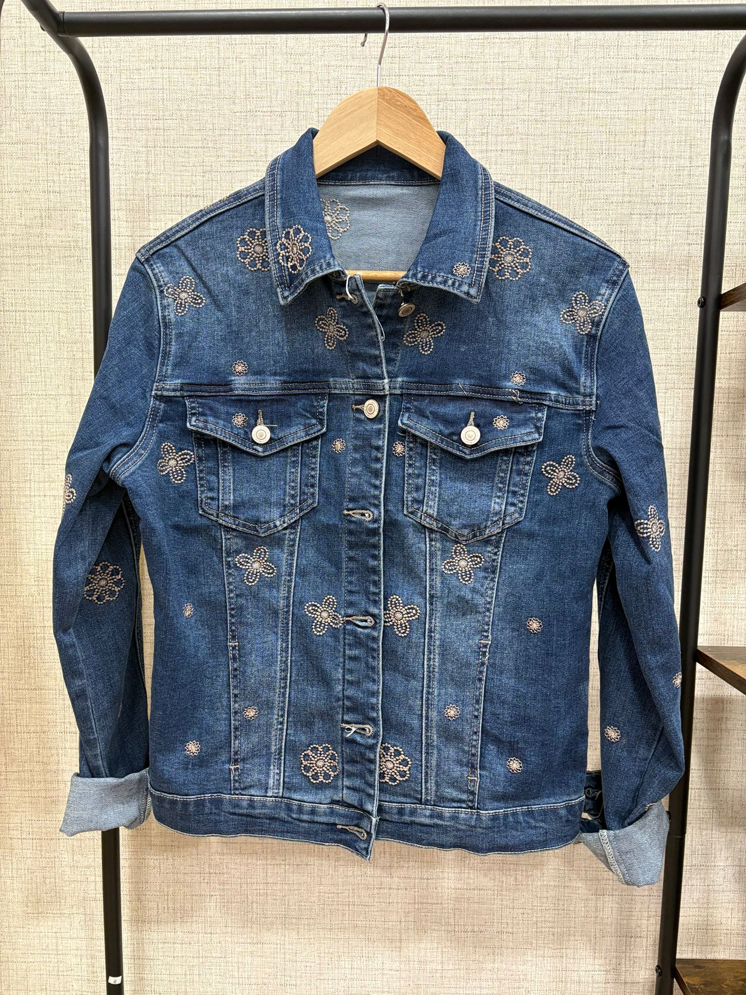Cazadora vaquera de estilo atemporal con dibujos bordados que aportan un toque original y distintivo al diseño. Confeccionada en denim resistente y cómodo, es perfecta para el día a día y fácil de combinar con cualquier look.