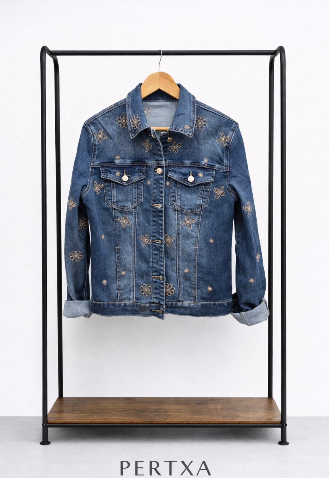 Cazadora vaquera de estilo atemporal con dibujos bordados que aportan un toque original y distintivo al diseño. Confeccionada en denim resistente y cómodo, es perfecta para el día a día y fácil de combinar con cualquier look.