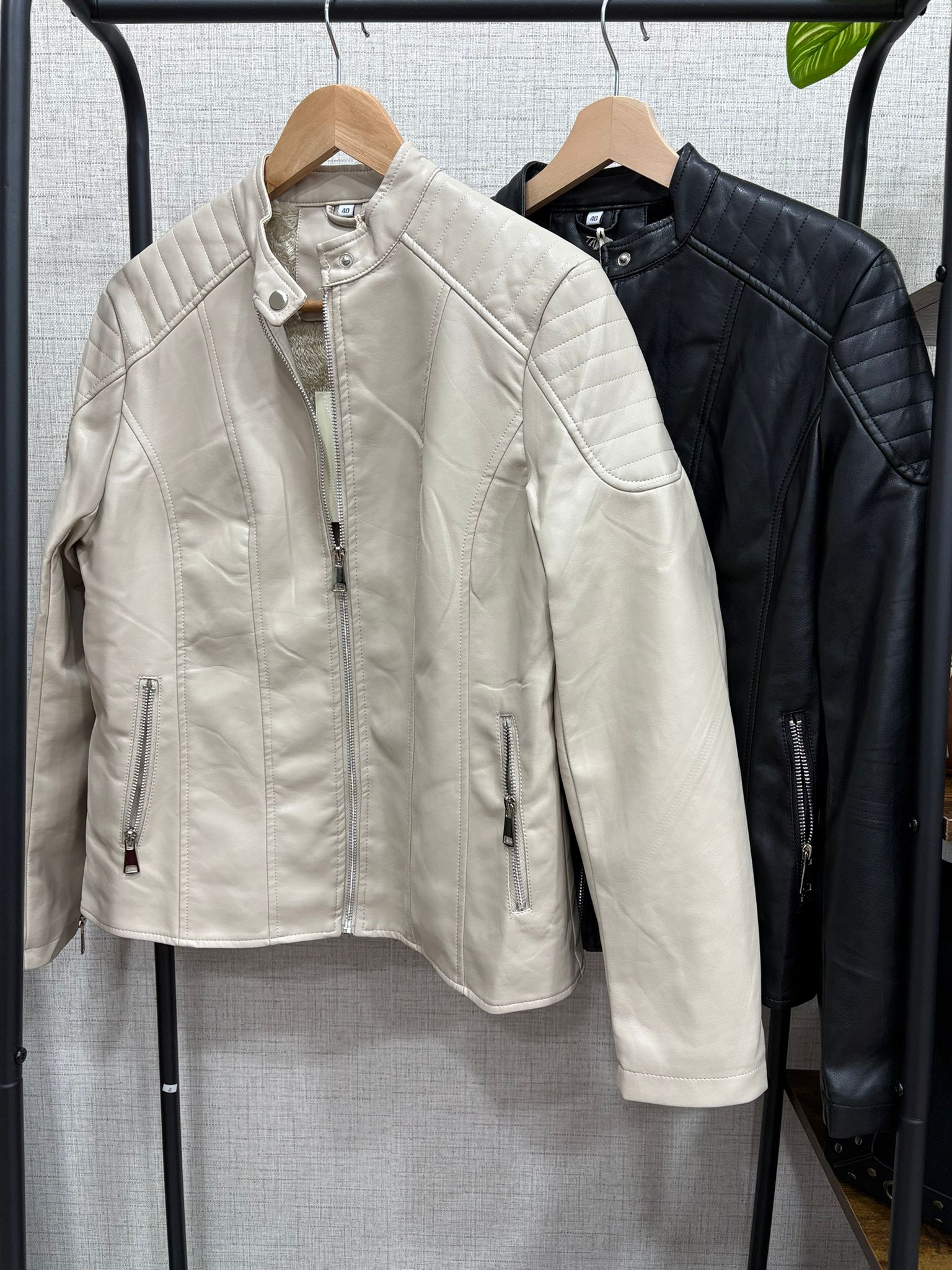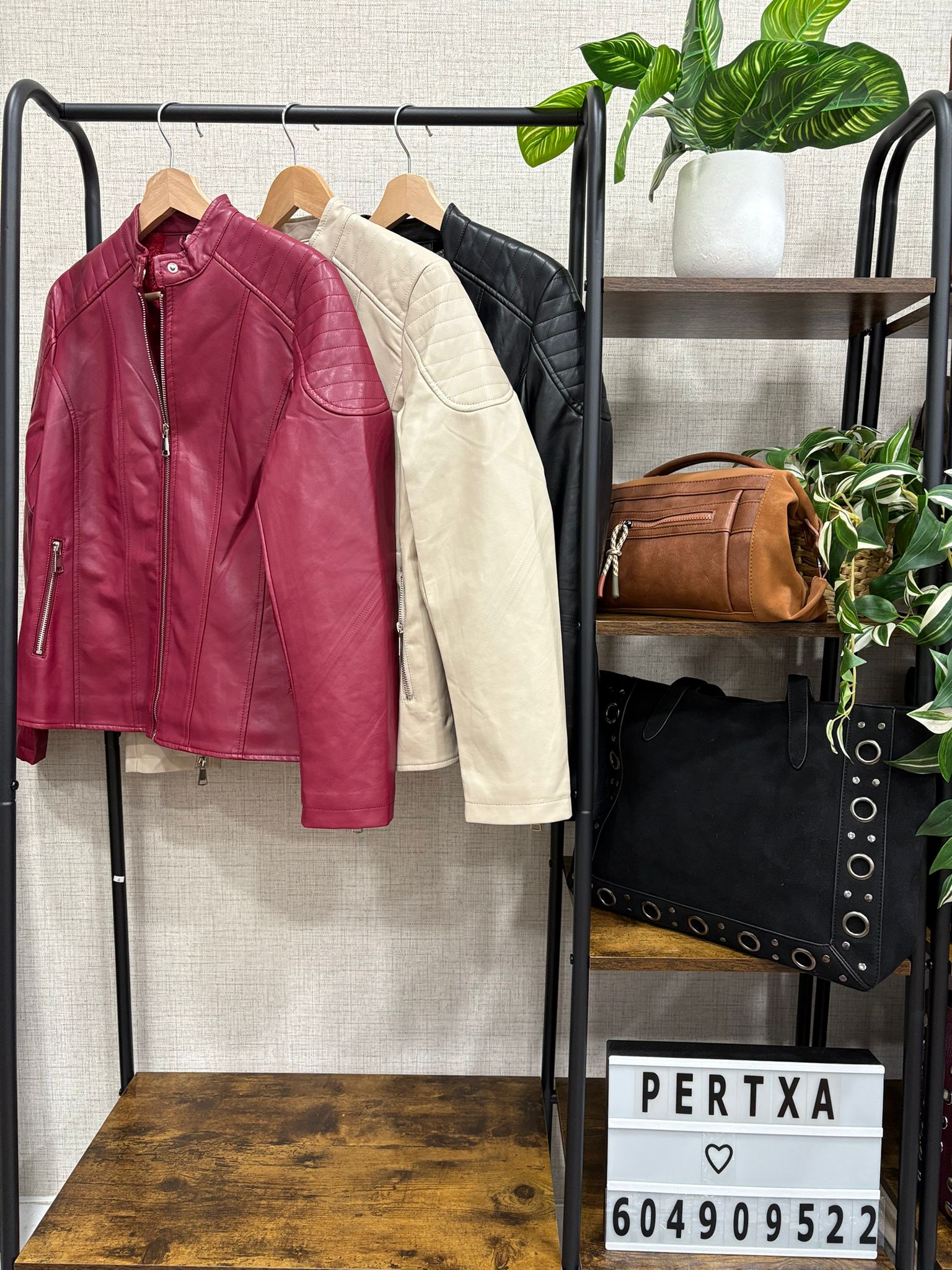 Chaqueta de polipiel con interior forrado en pelito suave, ideal para aportar abrigo y confort. Incorpora cierre de cremallera para un ajuste práctico y moderno.