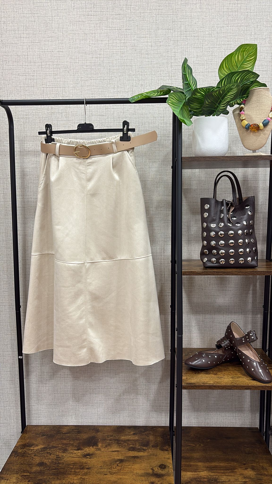 Descubre la falda midi de antelina con cinturón, una prenda elegante y versátil que combina comodidad y estilo en un diseño atemporal. Su favorecedor corte evasé estiliza la silueta, aportando movimiento y un ajuste perfecto para cualquier ocasión.