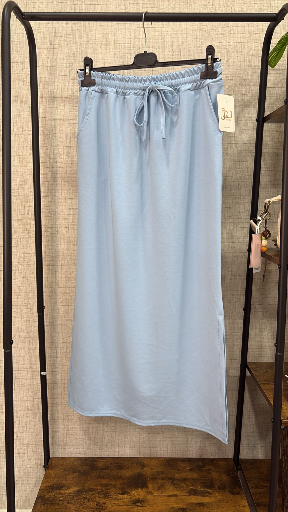Falda cómoda y versátil con cintura engomada que se adapta perfectamente a la silueta. Diseñada con prácticos bolsillos y aberturas laterales que aportan movimiento y estilo. Confeccionada en mezcla de poliéster y viscosa, es ligera, suave y perfecta para looks casuales o de diario.