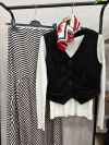 Su diseño de rayas añade un toque moderno y versátil, perfecto para combinar tanto con blusas formales como con camisetas más casuales. Gracias a su tejido ligero y resistente, es una prenda ideal para cualquier temporada.