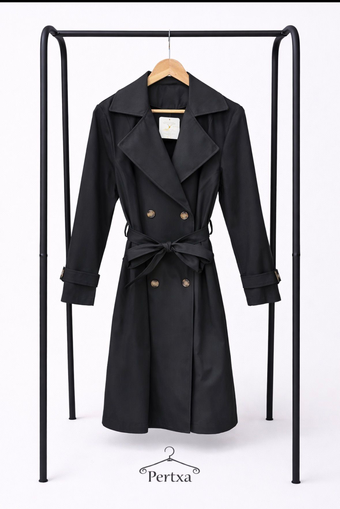 Gabardina negra elegante y versátil, ideal para completar cualquier look en temporada de entretiempo. Confeccionada con materiales de alta calidad, ofrece un corte moderno, cómodo y resistente al viento y la lluvia ligera. Perfecta tanto para outfits formales como casuales, esta gabardina es un imprescindible en cualquier armario. Compra tu gabardina negra online y luce estilo en cualquier ocasión.