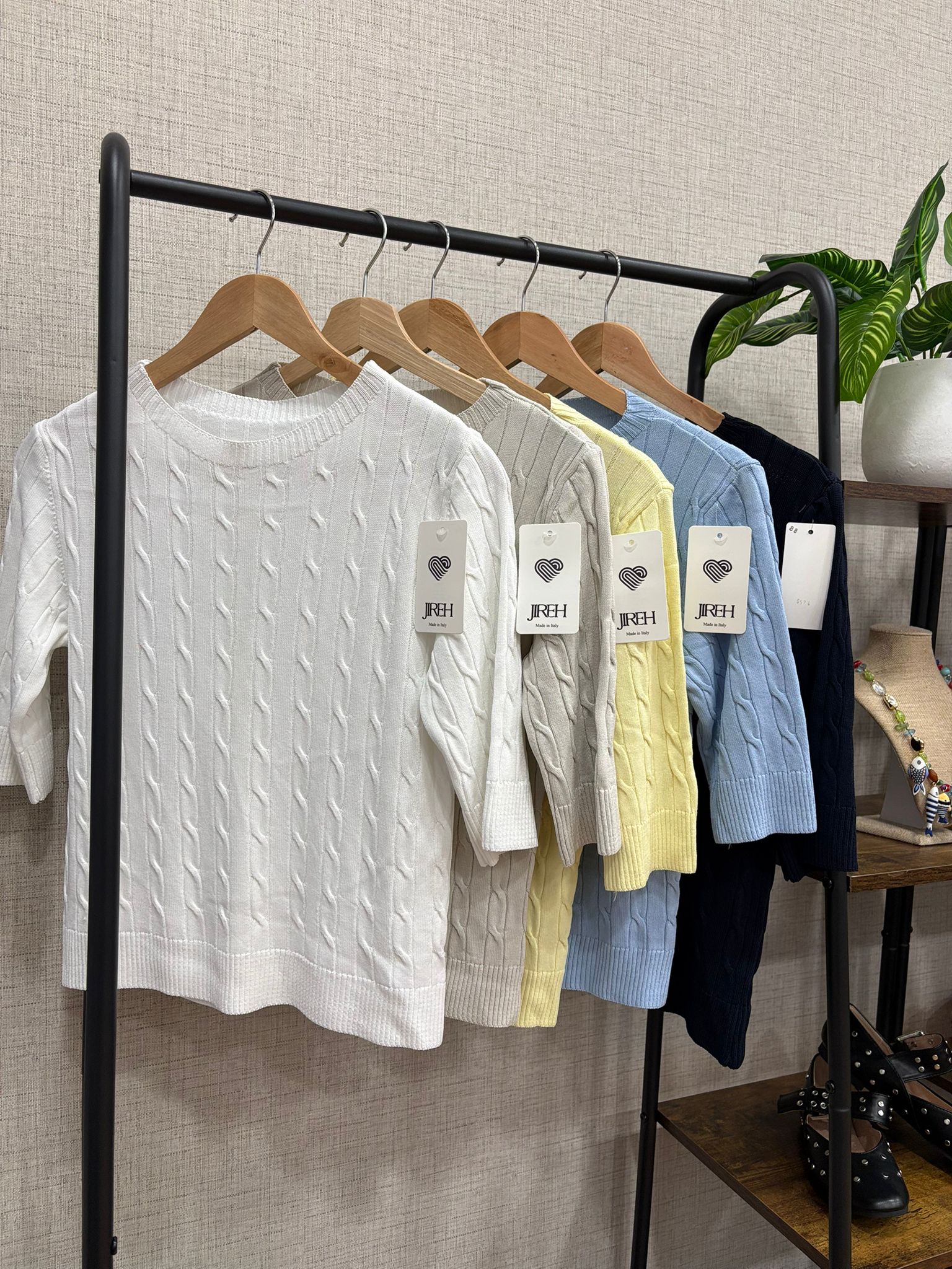 Jersey fino de mujer con diseño de ochos, confeccionado en mezcla de viscosa y nylon que aporta suavidad, ligereza y un ajuste cómodo. Su manga corta lo convierte en una prenda ideal para entretiempo, combinando estilo clásico con un toque actual. Perfecto para llevar con jeans, faldas o pantalones en looks versátiles y elegantes.