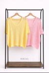 Aporta frescura y estilo a tu armario con este jersey fino de ganchillo, una prenda ligera y llena de encanto. Su tejido calado le da un aire delicado y femenino, perfecto para los días de entretiempo.