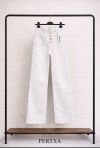 Pantalón blanco de diseño elegante con exclusivos botones joya que aportan un toque sofisticado y diferencial. Confeccionado en tejido altamente elástico, se adapta perfectamente a la silueta ofreciendo máxima comodidad y efecto moldeador. Ideal para looks versátiles, desde outfits casual hasta combinaciones más formales.