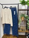 Vaquero ancho de corte recto con flores bordadas en la parte delantera, que aportan un toque femenino y original.
