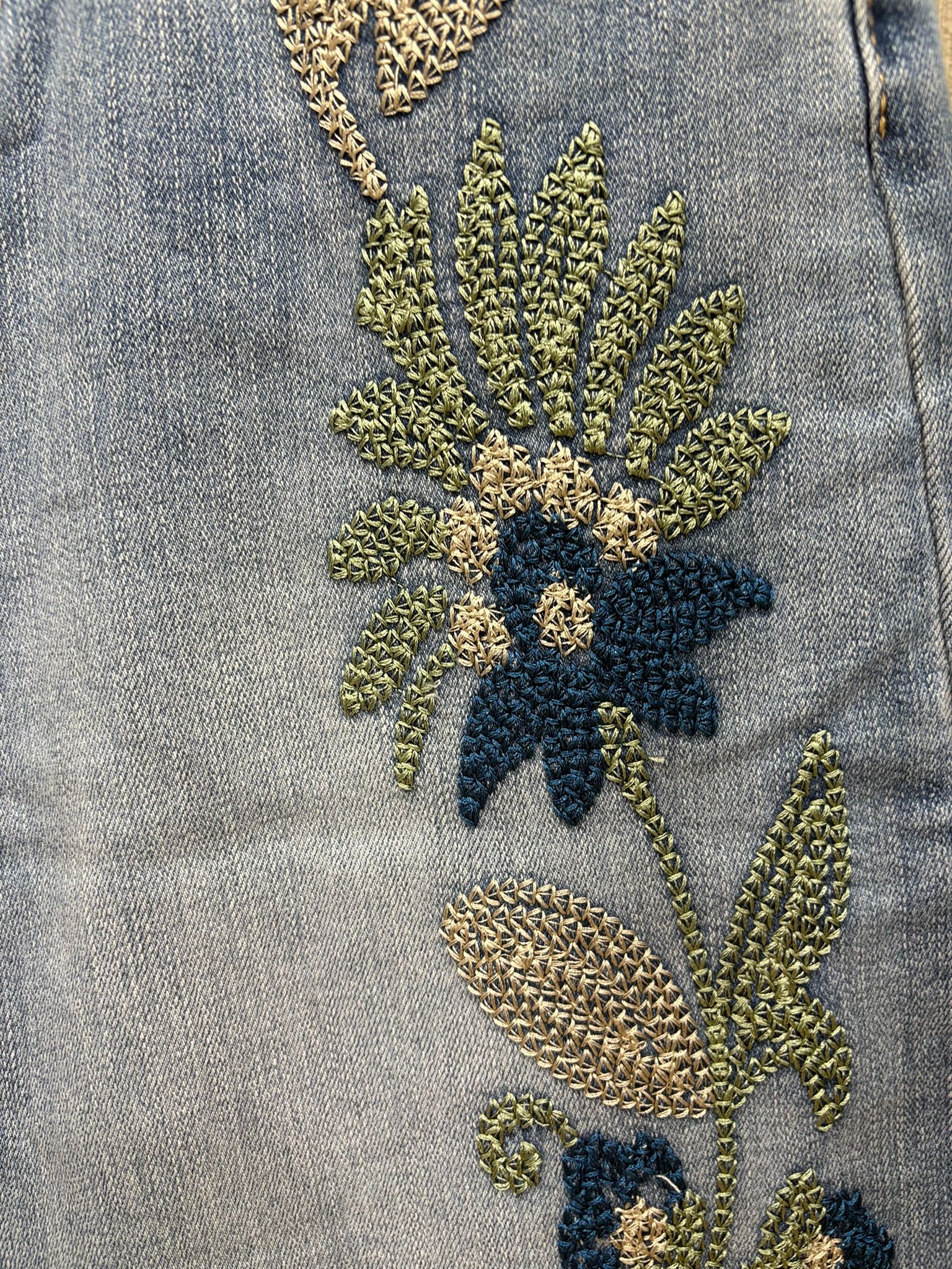 Añade un toque especial a tu estilo con este vaquero con bordados, una prenda que combina la esencia del denim con detalles únicos que marcan la diferencia. Sus bordados decorativos aportan personalidad y un aire femenino, convirtiéndolo en el protagonista de cualquier look.