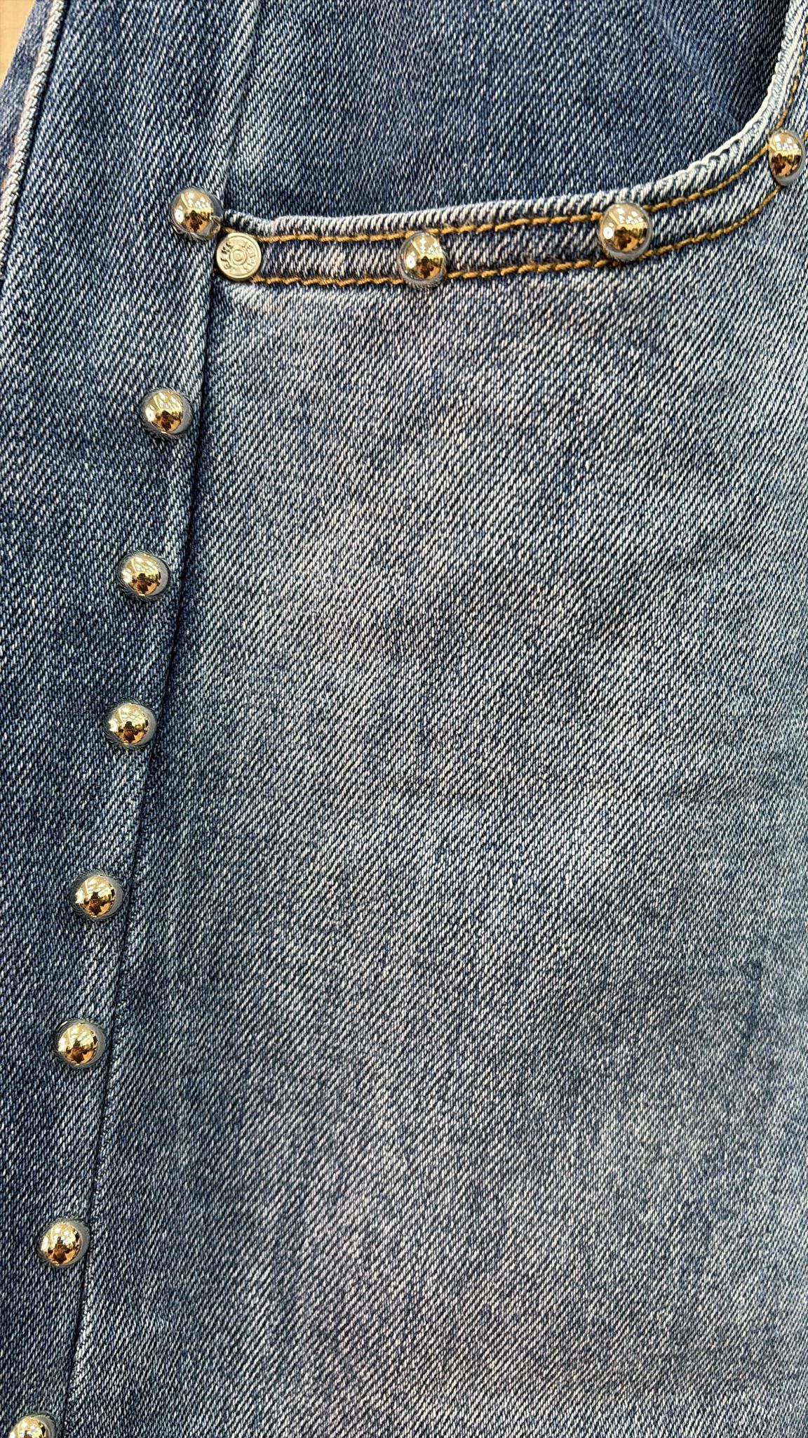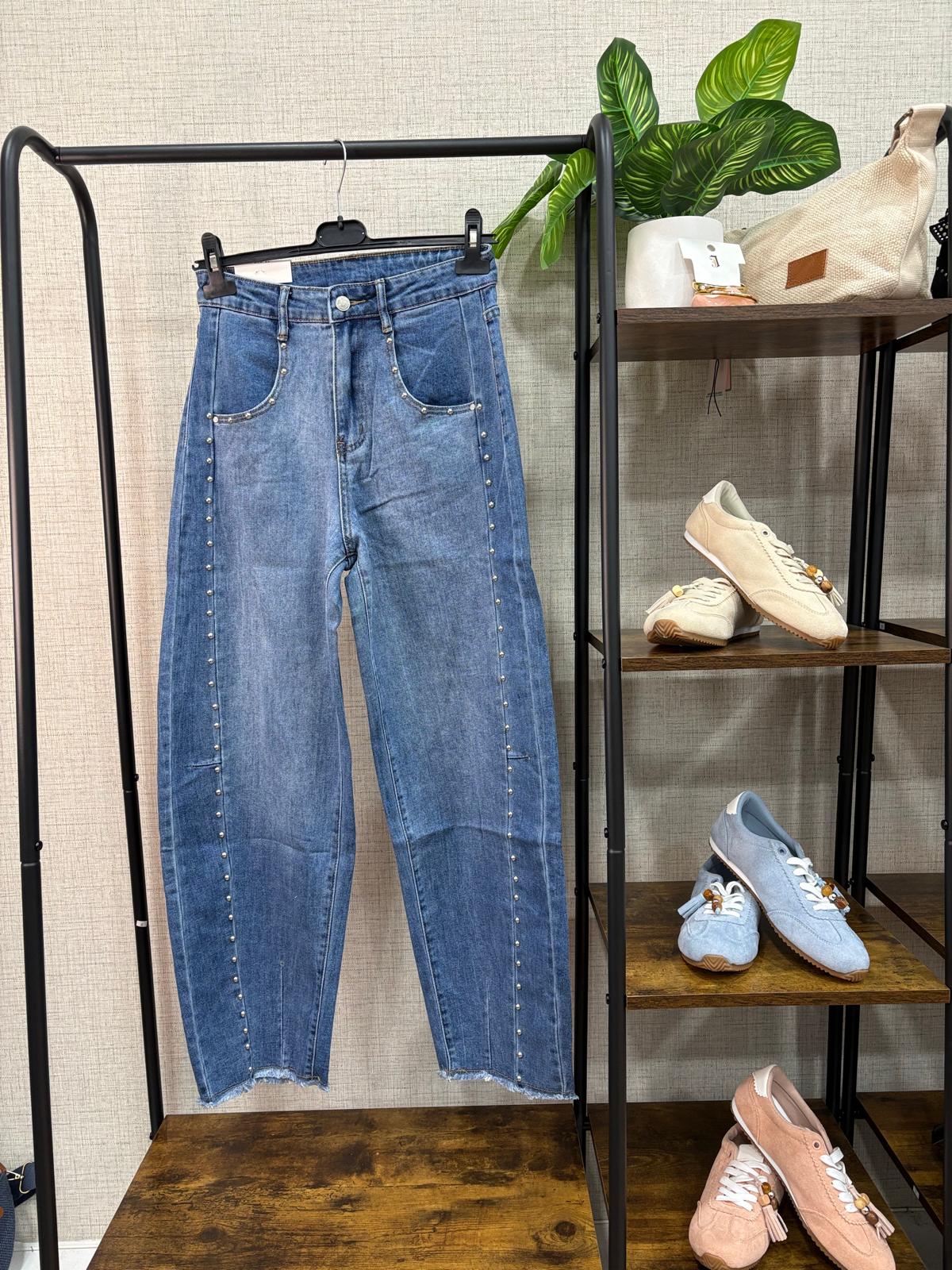 Vaquero ancho de estilo relajado con tachuelas metálicas en los laterales que aportan un toque moderno y atrevido. Su corte amplio proporciona comodidad y libertad de movimiento, convirtiéndolo en una prenda perfecta para el día a día. El diseño combina la esencia del denim clásico con un detalle distintivo que añade carácter y estilo. Ideal para crear looks casuales con personalidad, combinándolo con camisetas, camisas o tops para un outfit actual y versátil.