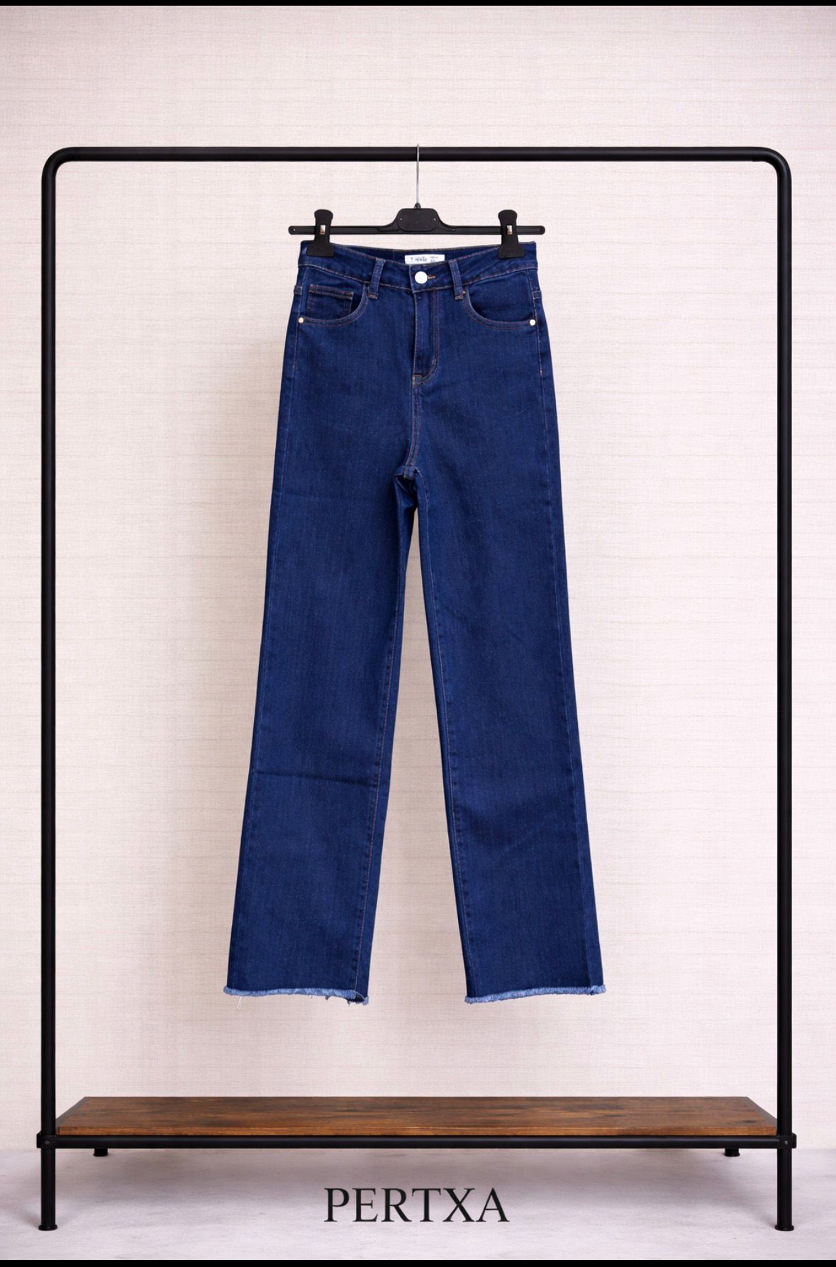 Vaquero wide leg con bajos desflecados que aportan un aire moderno y desenfadado.