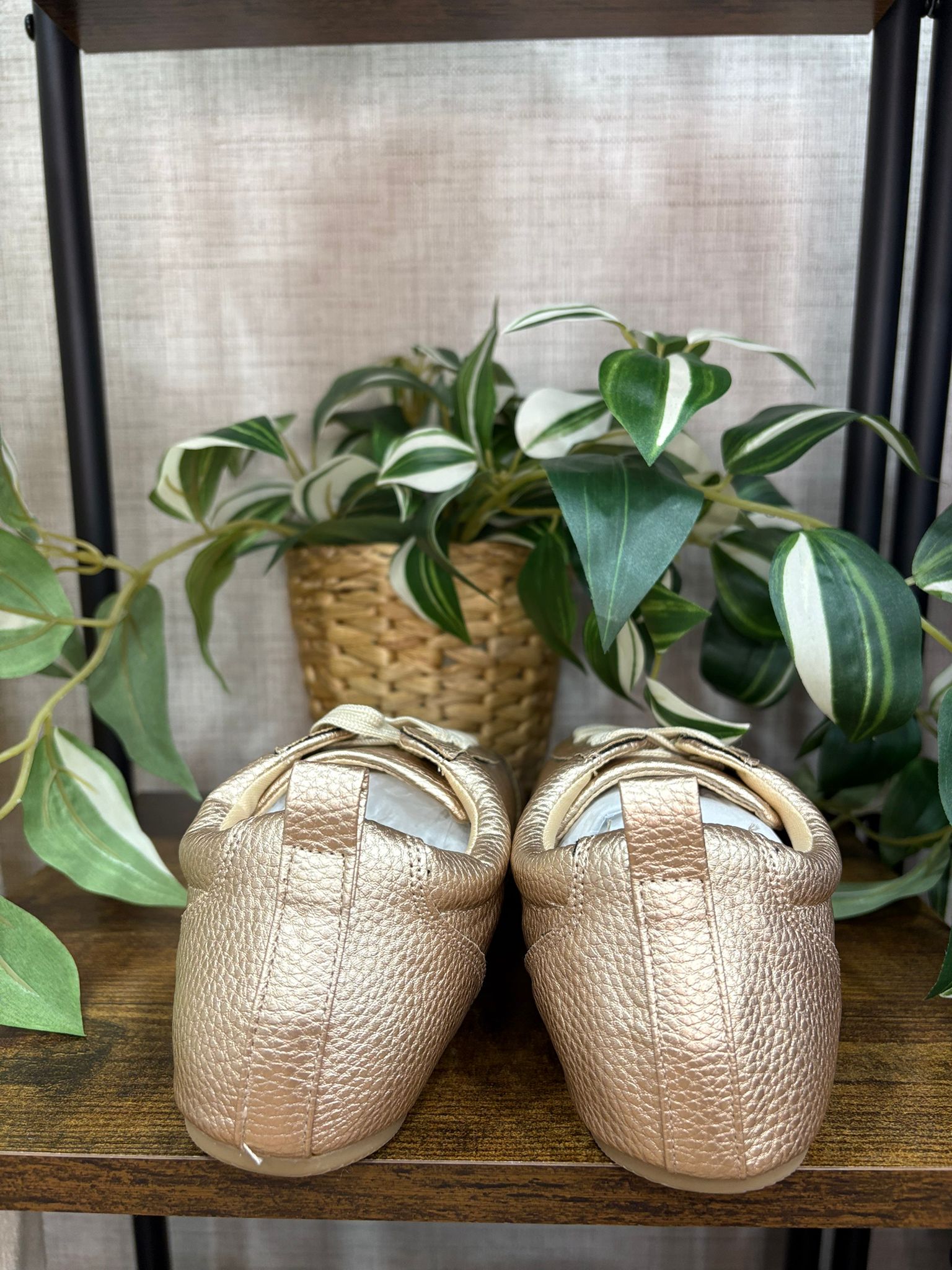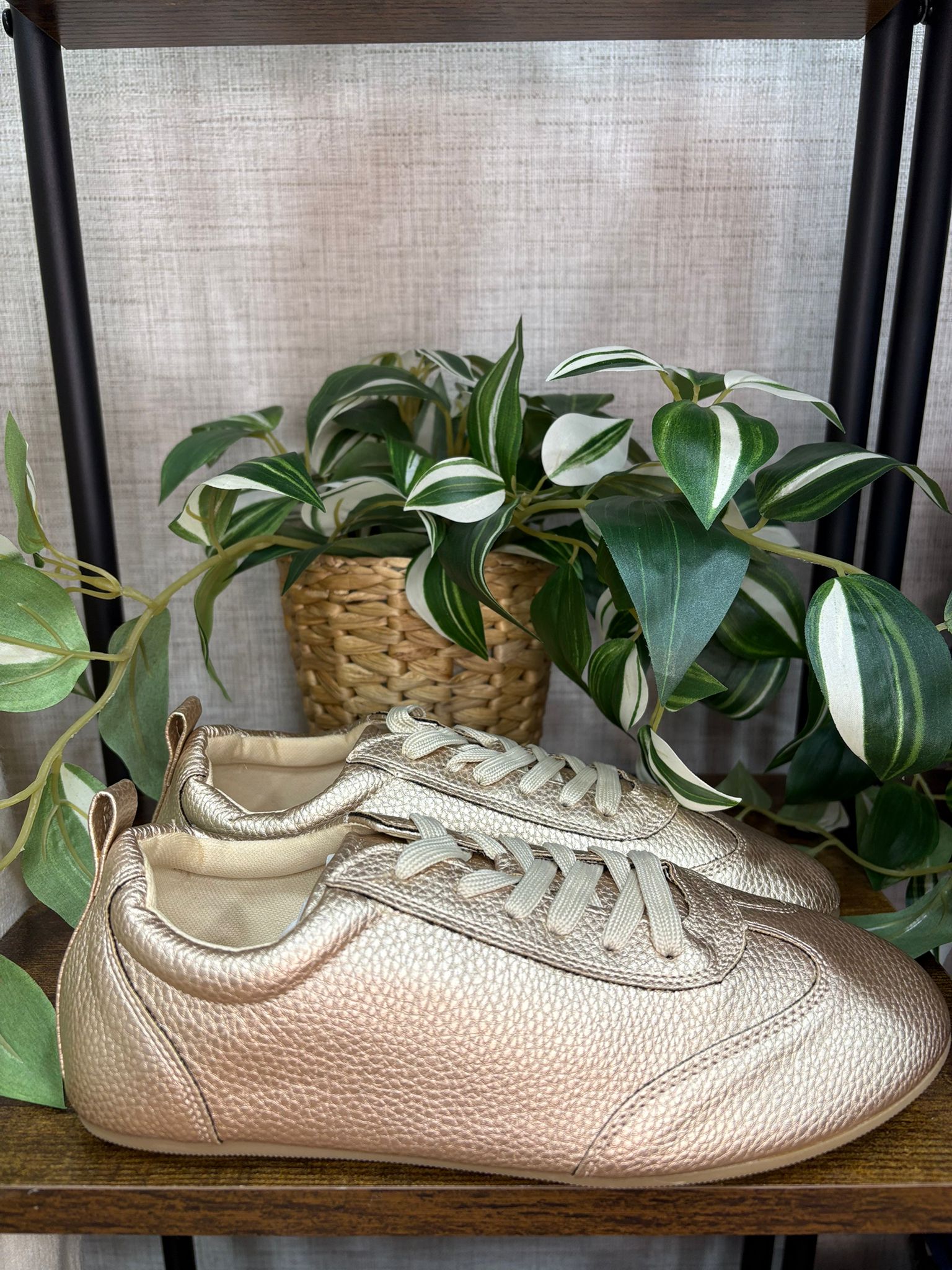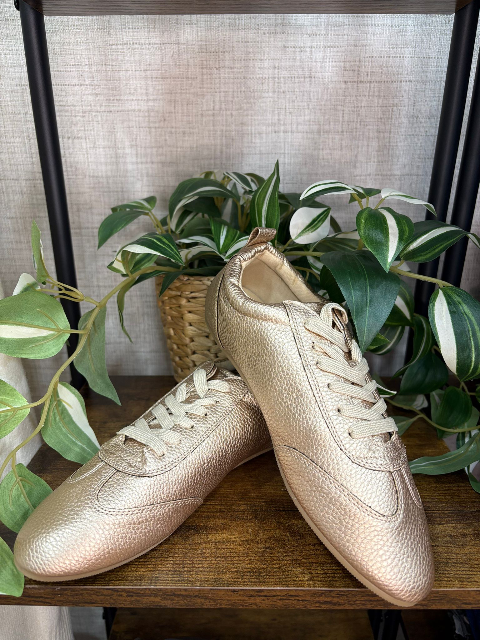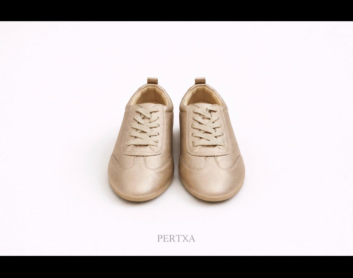 Zapatillas de piel sintética en color dorado, cómodas y modernas. Con cordones para un ajuste seguro, perfectas para aportar un toque brillante y sofisticado a tus looks diarios.